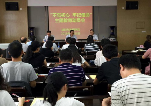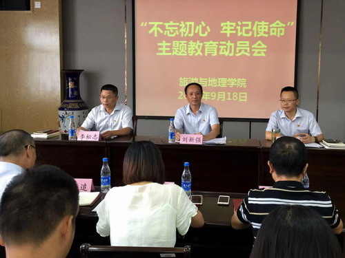 9月18日下午,旅游与地理学院党委在学院512会议室召开了“不忘初心、牢记使命”主题教育动员大会,深入贯彻落实习近平总书记在“不忘初心、牢记使命”主题教育工作会议上的重要讲话精神,贯彻落实省委第二批主题教育工作会议部署要求和学校主题教育动员部署会议精神,对学院开展主题教育进行动员部署。学院党委书记黄伟作动员讲话。学校督导五组组长、化环学院原党委书记刘新强作了指导讲话,督导五组成员、党校办公室主任陈娟出席会议。学院党政领导班子全体成员,全体教工党员和学生党员参加了会议。会议由李松志院长主持。