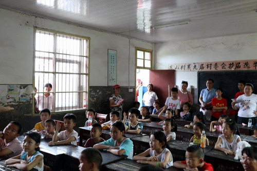 顺利到达东山村 为东山小学留守儿童讲授党团知识