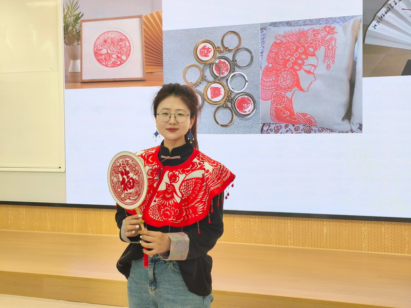 陈梦梦老师是国家级非物质文化遗产瑞昌剪纸市级传承人、江西省创新创业培训十佳讲师、江西省民间艺术家协会会员、九江市双百双千人才、九江市最佳讲解员、瑞昌剪纸博物馆讲解员。她同时还是旅游与地理学院《非遗里的江西》客座教师,多次受邀在我校及南昌大学、东华理工大学、江西财经职业学院等多所院校开展瑞昌剪纸教学活动。她将瑞昌剪纸带入高校课堂,为培养年轻一代对传统文化的兴趣与热爱奠定基础,为瑞昌剪纸的传承培养了新生力量。