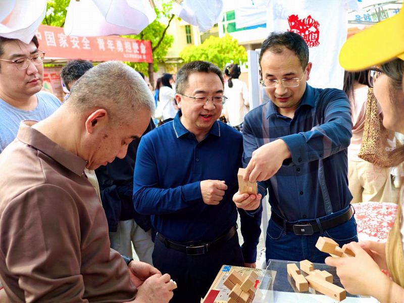 活动期间,旅游与地理学院院长李华,副院长陈海龙、曹禹等到场观看了同学们的体验活动,并与在场的非遗传承人、留学生及我们的同学们亲切交流,对本次非遗实践课程的组织形式和活动成效给予充分肯定,鼓励师生们继续以课程为载体,结合非遗志愿活动等多种形式持续推进非遗传播及传承工作,让更多青年学生了解非遗、热爱非遗。现场还有同学带来广西三月三表演,婉转悠扬的山歌与浓厚的非遗体验氛围相互交融,为整场活动增添了民族文化氛围,将现场气氛推向高潮。