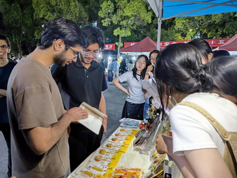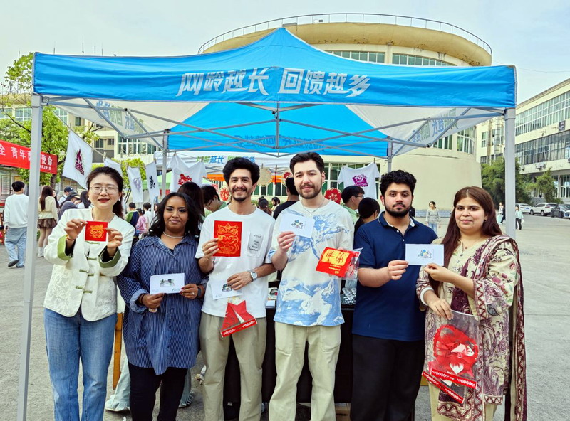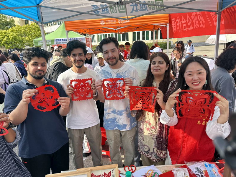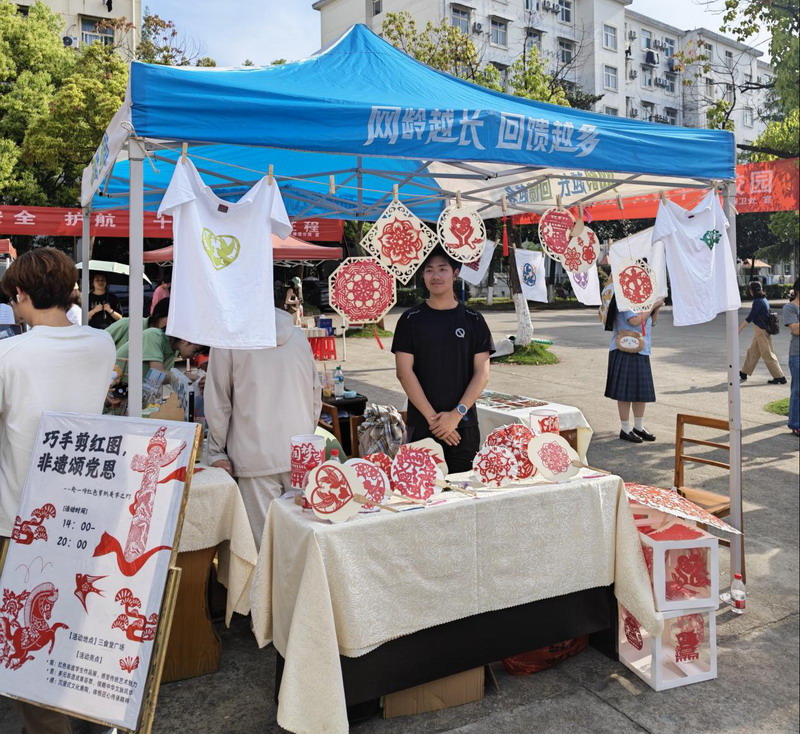 活动现场还陈列了同学们亲手以“巧手剪红图,非遗颂党恩”为主题创作的瑞昌剪纸文创作品,精细的技艺、创新的载体,既是一次成功的课程实践成果转化,也是一次红色基因传承“师生共育”模式的有益尝试。此外,我院样式雷研究团队、“浔玩方舟”文创团队也参与到了此次实践活动中来,收获了诸多关注。值得一提的是,几位来自巴基斯坦、俄罗斯等国的留学生也主动加入体验队伍,参与到每一项非遗的实践体验中,与不同项目的传承人们及在场的同学们互动交流,连连惊呼“amazing!”在将所有的非遗项目都体验了一遍后,留学生们纷纷表示在此次活动中深刻感受到了中华传统文化的魅力,希望以后能多多参与此类活动。