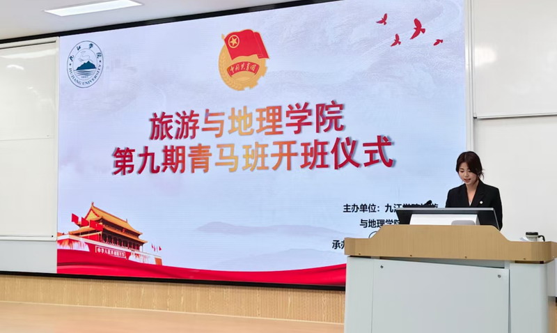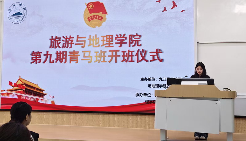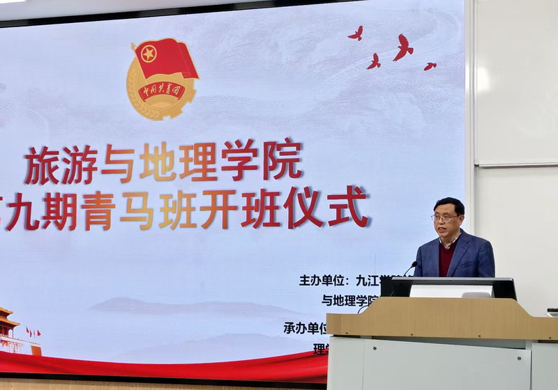 为深入学习贯彻2026年全国两会精神,深化“青年马克思主义者培养工程”育人实效,引导青年学子坚定理想信念、勇担时代使命。4月28日中午,旅游与地理学院团委在竞知楼阶四教室举行了第九期“青年马克思主义者培养工程”开班仪式。学院党委副书记吴彭年到会讲话并讲授第一课,团学联主席团成员、第九期青马班全体成员参加仪式,仪式由学院团委副书记邱玉娟同学主持。