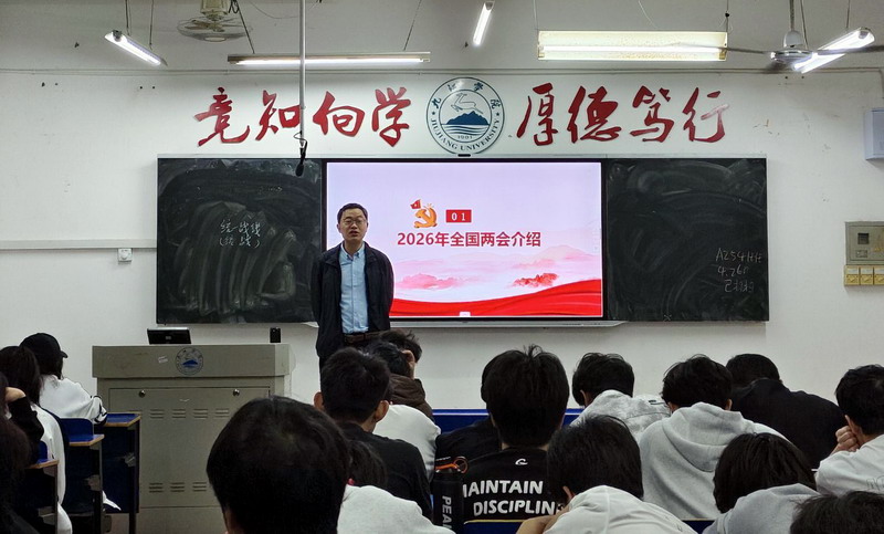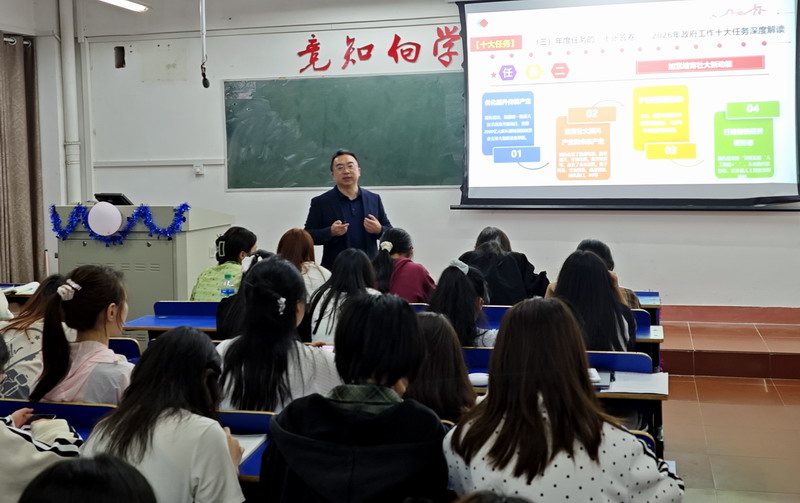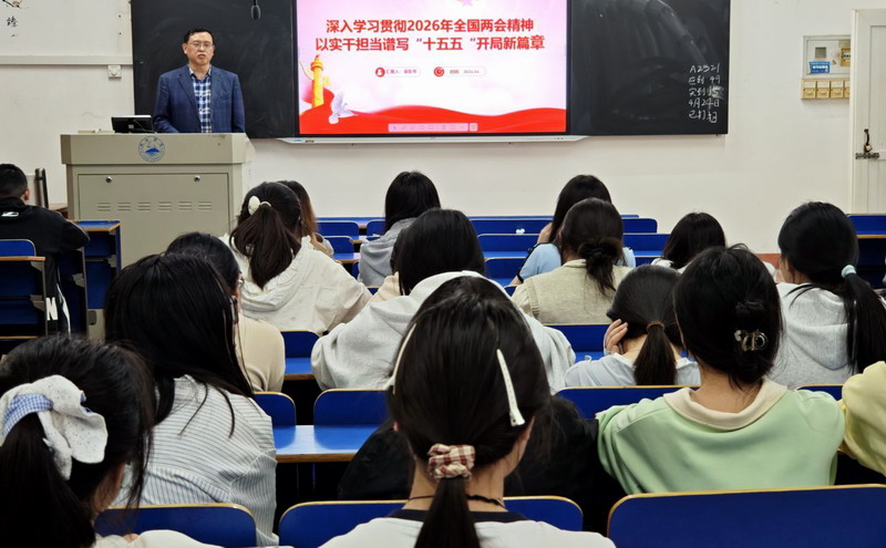 为推动2026年全国两会精神入脑入心,全面把握“十五五”时期发展蓝图与重点任务,聚焦立德树人根本任务,加强领导干部深入基层联系学生工作,引导青年学子认清时代大势、坚定理想信念、勇担强国使命,4月26日晚,旅游与地理学院领导班子成员纷纷走进课堂、走近学生,为学生讲授思政课,为学生开展了一堂深刻的思政课——《深入学习贯彻2026年全国两会精神,以实干担当谱写“十五五”开局新篇章》。