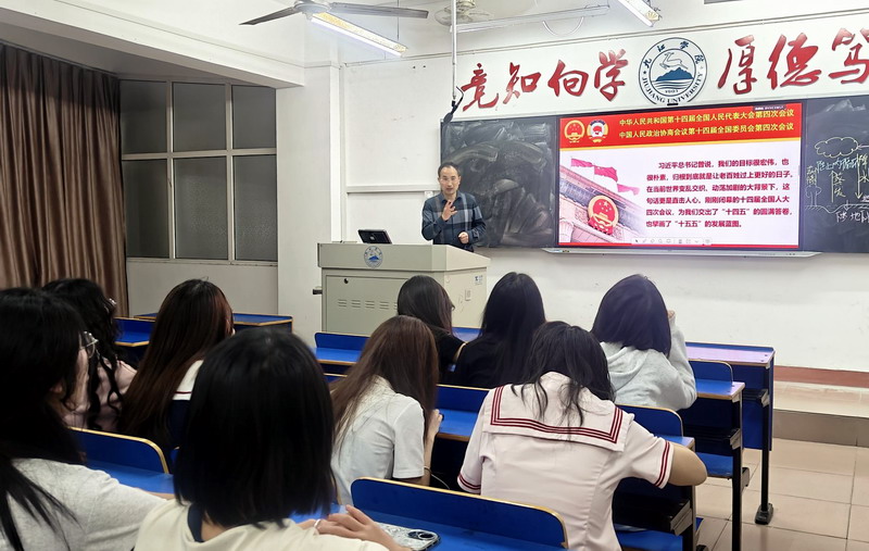 课堂上,学院领导以“十五五”开局之年的时代坐标为切入点,系统阐释了2026年全国两会在擘画发展蓝图、凝聚奋进力量、完善法治保障方面的重大意义,带领同学们在历史纵深与全局视野中读懂中国发展的时代大势。同时紧密结合习近平总书记在全国两会期间的重要讲话精神,深度解读了高质量发展、新质生产力、高水平对外开放、全国统一大市场建设等一系列关键部署。立足文旅和地理行业特点与文化强省、文旅强市建设需求,生动讲述了新时代全面深化改革的重大成就,让青年学子真切体会到个人成长与国家命运同频、专业所学与时代需求共振的内在逻辑,引导学生顺应时代发展需要,不断提升自身的综合能力,更加自觉地把个人的发展融入中国特色社会主义伟大实践之中,为中华民族伟大复兴贡献自己的智慧和力量。