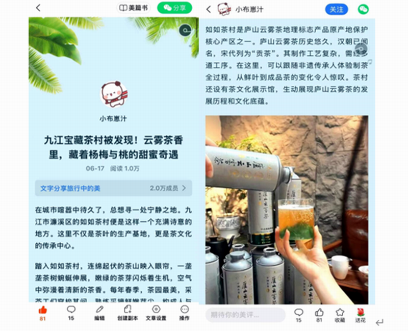 教工第二党支部江西濂溪茶科技小院团队在做好科技茶、生态文化茶推广的同时,积极与双垅村沟通,以“秀美双垅・茶菌共生”为主题,利用学科专业优势,深度融合农业+文化+旅游,对整个村庄的游赏单元及茶菌产业进行合理串联。并结合相关《旅游摄影》《旅游公共关系》《旅游策划》等课程,围绕“双垅历史”“双垅农业”“双垅生态”“绿丰科技”“绿丰茶园茶叶”等主题展开创作,通过镜头和文字记录双垅之美、产业蝶变,以新媒体技术赋能农业发展,用专业力量为乡村振兴注入青春动能。