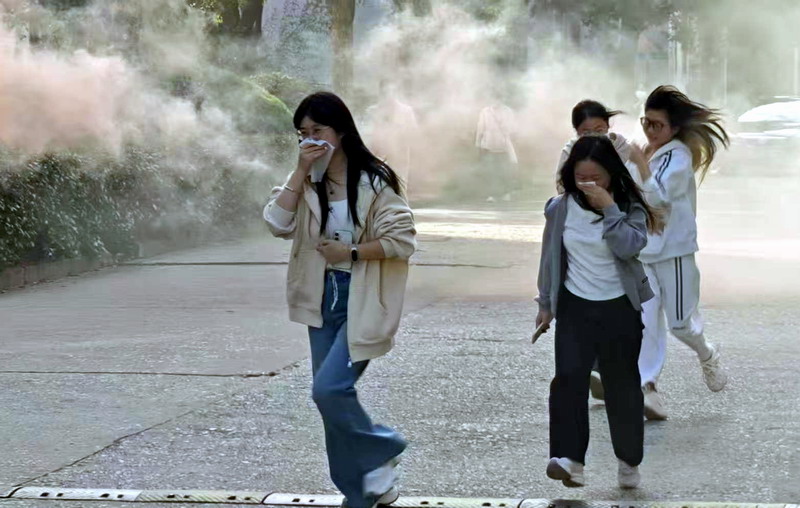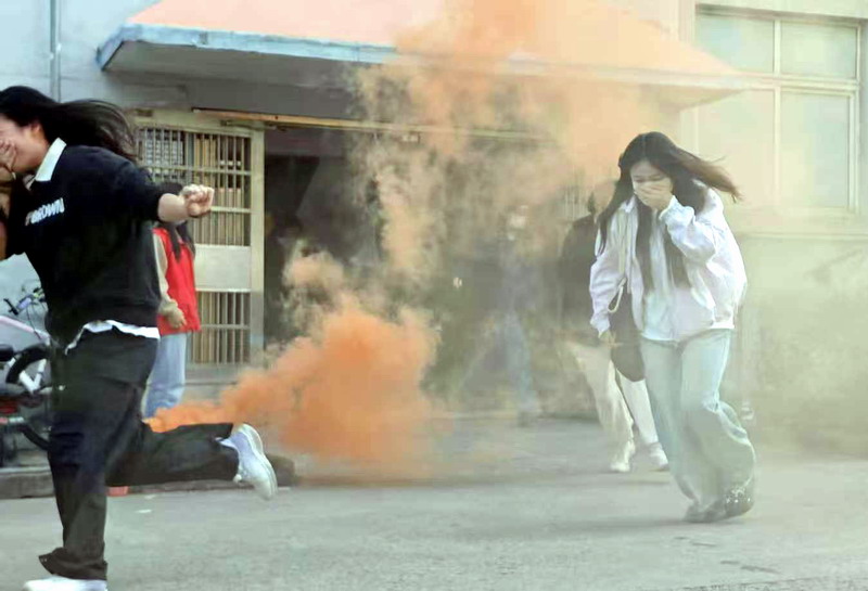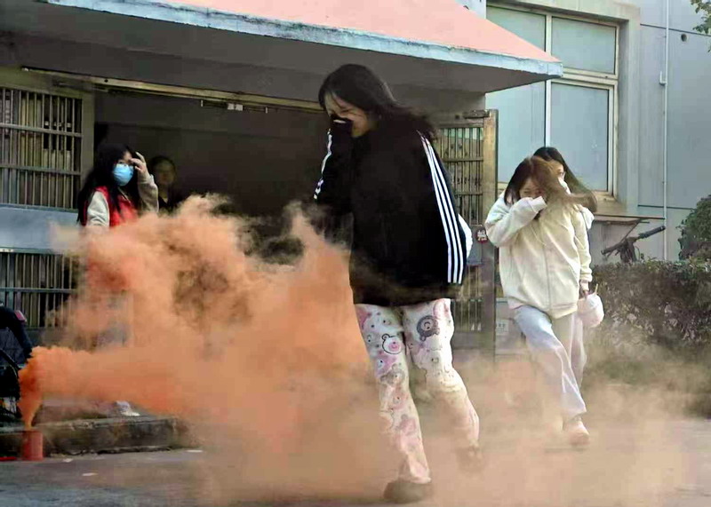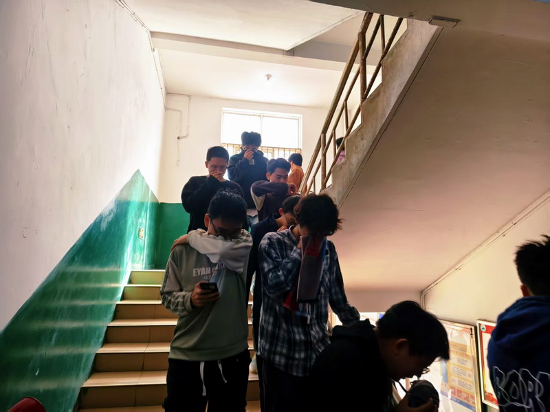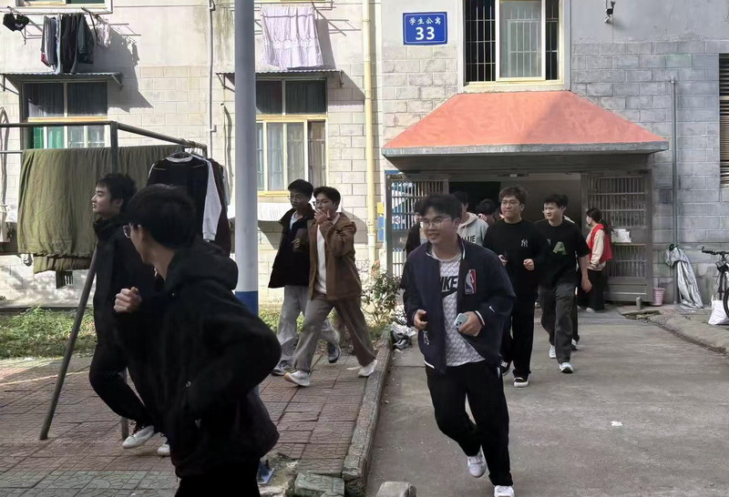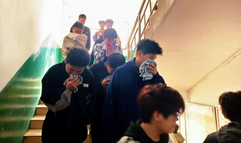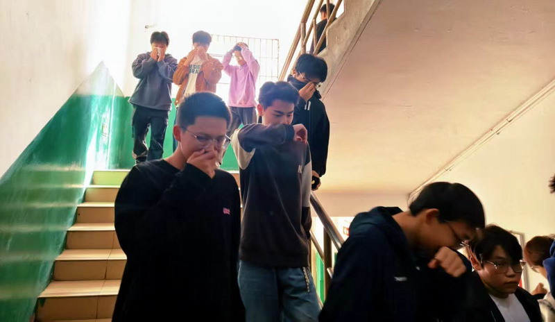 下午14时15分,全体学生干部到位,检查并确保逃生路线无杂物或障碍物,14时30分警铃准时响起,演练正式开始。在疏散过程中,同学们沉着冷静,反应迅速,纷纷用湿毛巾捂住口鼻,弯腰低姿,按照预定的顺序与疏散路线有序撤离,在到达指定安全区域后,各寝室长及时清点人数,并向现场指挥人员报告情况。整个过程组织严密、紧张有序、反应迅速,未出现拥挤、推搡或踩踏现象,展现出良好的应急素养与协作意识。演练结束后,学生科曹铭副科长对本次演练进行点评,肯定亮点、指出不足并明确改进方向。他强调,校园安全事关师生生命财产安全,要求大家将演练所学转化为日常安全意识与习惯,时刻绷紧安全弦。