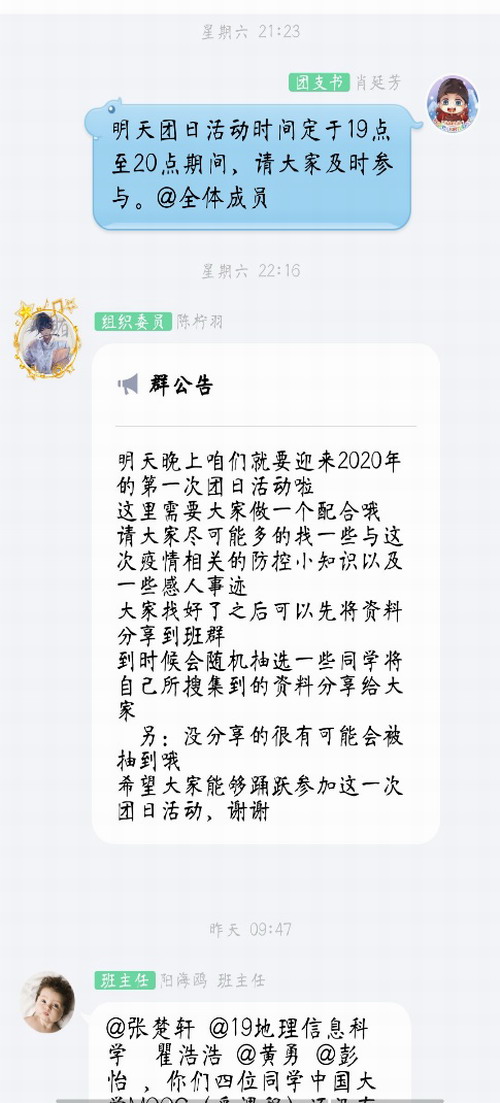 在此次线上团日活动中,旅游与地理学院团员青年充分地展现共青团员的先进性,做到了不信谣、不传谣、不恐慌,保持良好心态,对身边亲人和好友起到了良好示范作用。