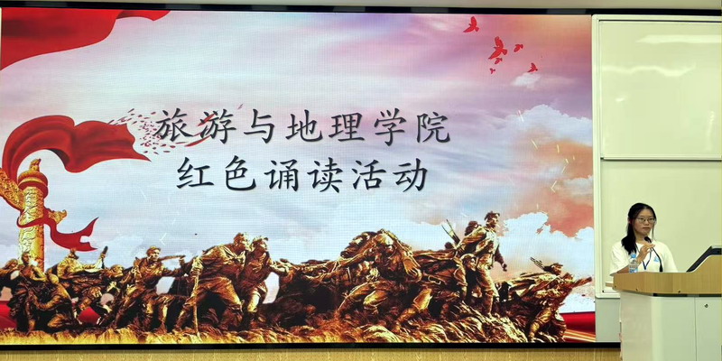 为传承红色基因,厚植家国情怀, 9月18日晚,旅游与地理学院于阶四教室举办2025级新生红色经典诵读活动。活动由学院学生会主席赵敏茜主持,以人民日报中国人民抗日战争暨世界反法西斯战争胜利八十周年主题视频拉开序幕,通过沉浸式诵读红色经典,带领新生在历史回响与精神传承中感悟信仰力量。