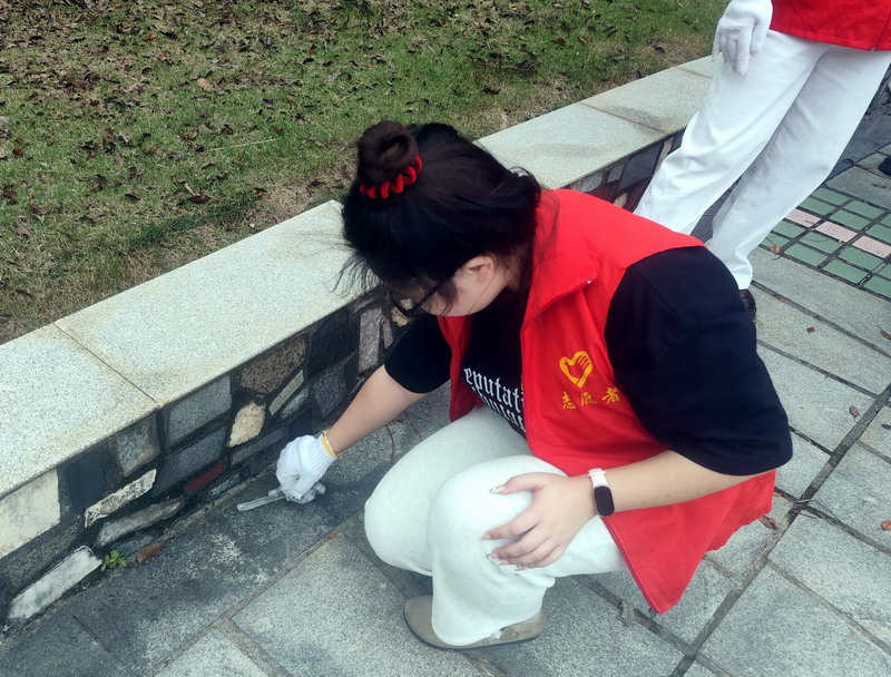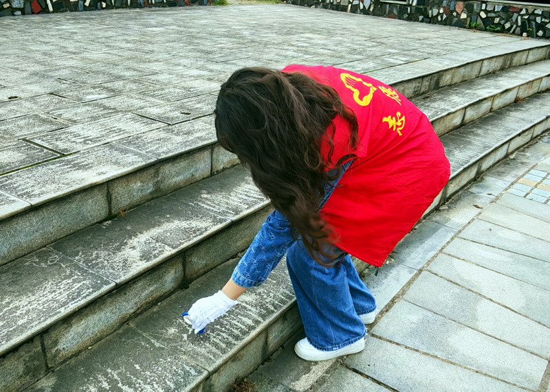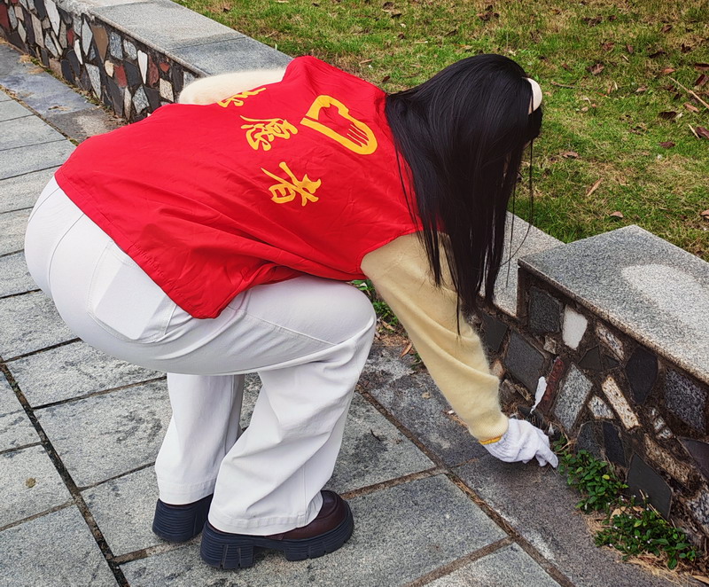 劳动过程中,大家热情高涨、分工协作,充分展现出党员不怕脏、不怕累的优良作风。遇到难以清理的顽固垃圾时,大家相互配合,用手小心拔除或用工具仔细清理,力求做到不留遗漏。过往同学对学员们的志愿行为纷纷投以赞许的目光,部分同学也主动加入到清扫队伍中,形成了“人人参与、共建美丽环境”的良好氛围。