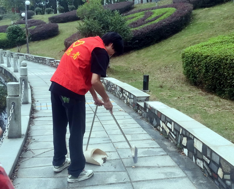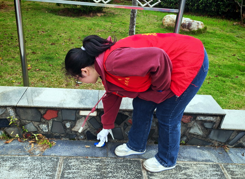 活动开始前,大家进行了分组分工,明确清扫范围、任务要求及安全注意事项,确保活动有序推进。学员们携带扫帚、垃圾袋、夹子等工具,迅速投入到清扫工作中。针对莲池周边步道、绿化带内的白色垃圾、落叶枯枝、碎石杂物等,各小组采用“分片清扫、集中清运”的方式,细致排查每一处卫生死角。有的学员弯腰捡拾草丛中的塑料瓶、食品包装袋,有的用扫帚清理路面落叶,有的负责将收集的垃圾分类装入垃圾袋并运送至指定垃圾桶。