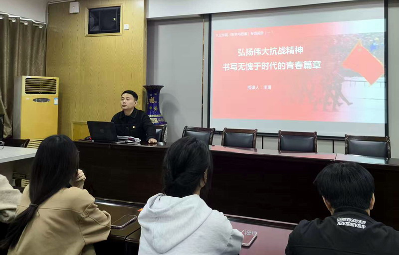 为深切缅怀抗战历史,弘扬伟大抗战精神,引导入党积极分子坚定理想信念、勇担时代使命, 10月29日中午旅游与地理学院分党校在竞知楼512会议室举行2025年下半年入党积极分子培训班第一次专题授课。本次授课以“弘扬伟大抗战精神,书写时代青春篇章”为主题,学生党支部书记李海应邀担任主讲,2025年下半年入党积极分子培训班全体成员参与。