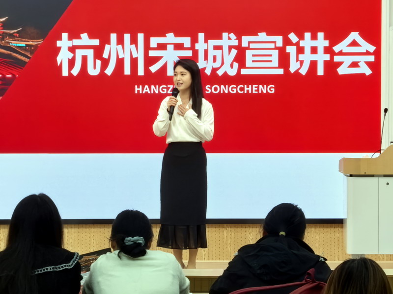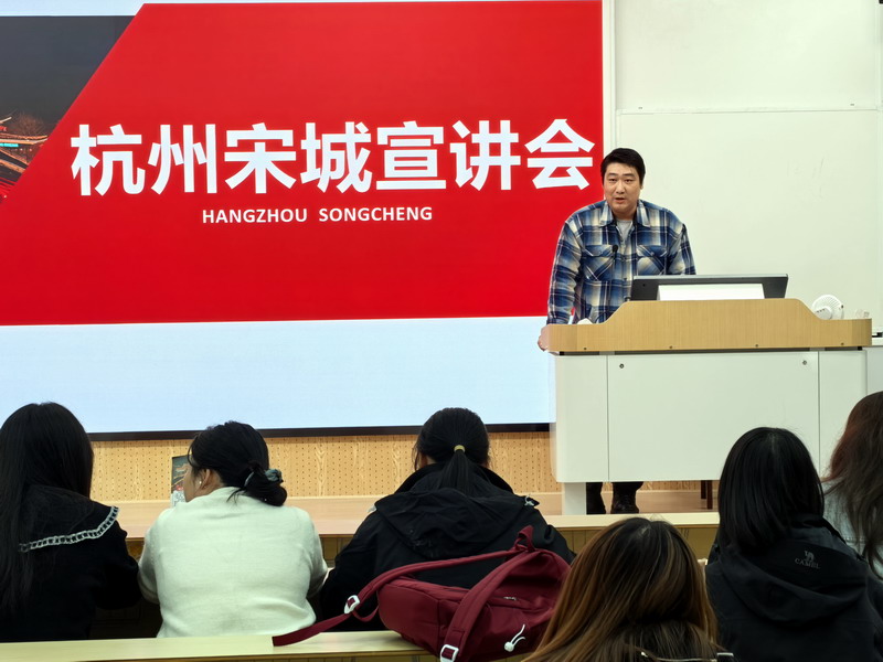 为帮助学子们深化企业认知、明晰就业前景。11月5日下午,杭州宋城演艺发展股份有限公司招聘经理李宪婷女士带队来院进行招聘宣讲会,学院曹禹副院长、学生科沈衍锋老师以及旅游管理、酒店管理专业2026届毕业生参加了此次宣讲会。
