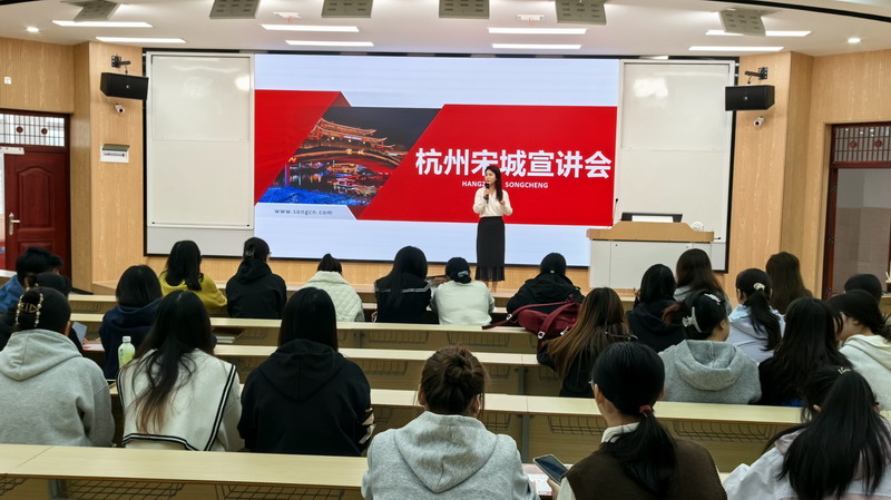 宣讲会上,杭州宋城演艺李经理围绕招聘岗位需求展开介绍,结合不同专业特点,详细解析了相关岗位的工作内容与职业发展路径。她用生动的实例为学生进行了职业生涯规划,对企业概况、企业文化、企业员工培养模式、企业目前的发展状况及发展前景与同学们作了详尽的分享,并就景区的运营特色和对专业人才的需求、培养计划等方面对同学们进行了全面的阐述。李经理还通过问答交流的方式一一为同学们答疑解惑,给予指导。同学们也就自己所关心的专业对口、企业对人才素质的要求、企业发展平台与机会等问题进行了互动交流。
