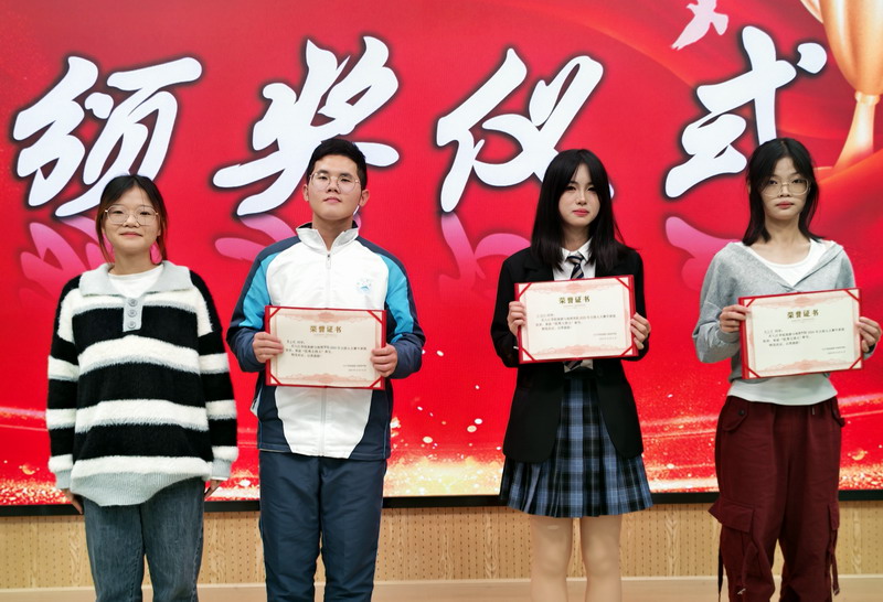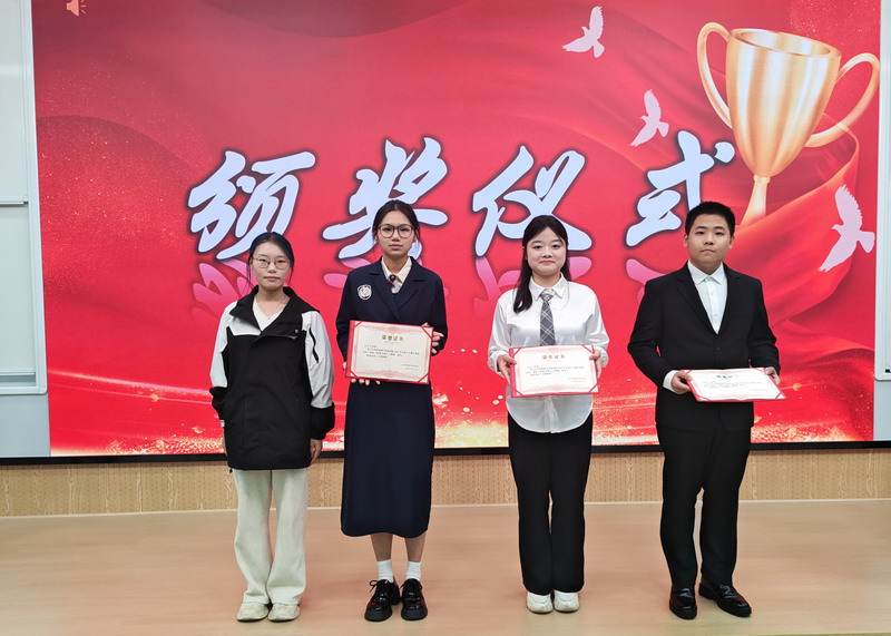 经评委现场打分,邓家健同学斩获一等奖,吴晓雅、田烁源同学获二等奖,何欣雨、周文琪、曹书恺同学获三等奖,蔡金梅、余煜钒、刘长宇同学获优秀奖,评委为获奖选手现场颁奖。