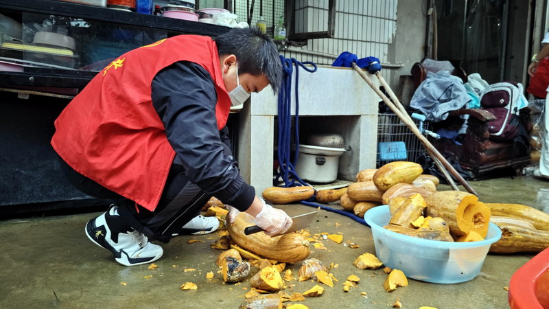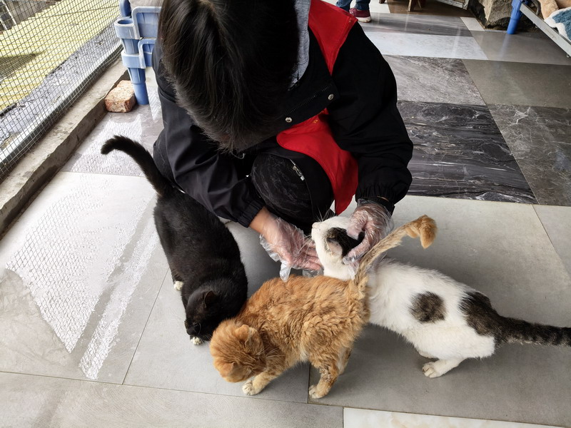 当日下午,全体志愿者准时在学校南门集合,按照“四人一组”的分组方式有序乘车前往基地。活动中,志愿者们分工明确、默契配合,全身心投入到基地环境改善工作中。一部分志愿者负责为流浪猫狗准备口粮,他们仔细清洗蔬菜、熟练切配食材、认真拆封宠物粮,将一份份新鲜的食物搬运至投喂区,确保每一只小动物都能及时吃到健康的餐食;另一部分志愿者则承担起“环境清洁员”的职责,手持扫帚、拖把和消毒工具,对动物居住的笼舍、活动场地进行全面清理,从清扫散落的毛发、粪便,到擦拭笼舍栏杆,再到仔细拖地消毒,不放过任何一个卫生死角。尽管过程中难免沾到污渍、听到动物的嘈杂叫声,但志愿者们始终耐心细致,用汗水为流浪猫狗营造出更加干净、健康的居住环境,看着小动物们在逐渐整洁的空间里安心进食、自由活动,大家的脸上都露出了欣慰的笑容。
