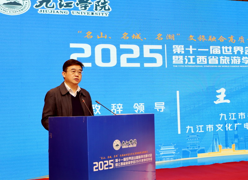 王建新在致辞中,代表市文化广电旅游局,向大会的召开表示热烈祝贺。他向与会人员系统介绍了九江源远流长的历史文脉、得天独厚的生态文旅资源,以及九江围绕“山江湖城”特色资源,实施文旅攻坚行动、推动文旅深度融合、加快建设区域文旅中心、全力打造长江国际黄金旅游带璀璨明珠的实践路径。他希望本次会议能够提炼出具有代表性的“九江案例”,构建起可推广的“名山范式”,为全国文旅融合高质量发展贡献智慧。