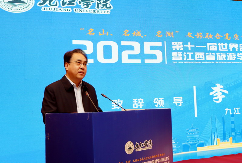 11月14日-16日,由九江学院、黄山学院、泰山学院、乐山师范学院、衢州学院、南昌师范学院、江西省旅游学会主办,九江学院旅游与地理学院(江西长江经济带研究院)、文学院(庐山文化研究中心)联合承办的“第十一届世界名山国际学术研讨会暨江西省旅游学会2025年学术年会”在我校举行。九江学院党委书记李明斌、江西财经职业学院党委书记李松志,九江市委宣传部副部长、市文广旅局党组书记、局长王建新,黄山学院党委副书记刘力、泰山学院副校长李峰、乐山师范学院副校长姜滔、衢州学院副校长郑文山、南昌师范学院副校长徐斌、上饶师范学院副校长张荣辉及来自国内近70所高校的130余位专家学者等领导出席会议。开幕式由九江学院党委委员、副校长王殿元主持。