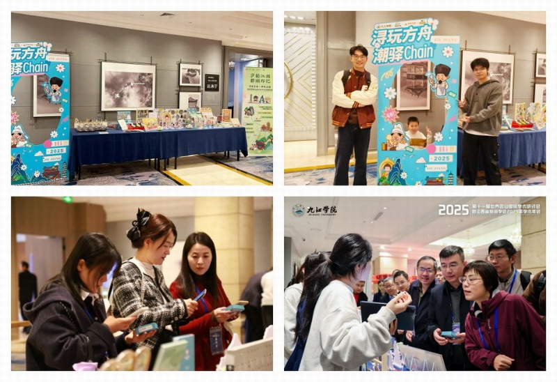 11月15日上午,在第十一届世界名山国际学术研讨会暨江西省旅游学会2025年学术年会的特色展示环节中,我院“浔玩方舟”学生团队携手“甲玩文创”品牌,集中展示校企合作文创研发的阶段性成果,成为大会现场极具人气的特色展区之一,吸引了众多专家学者驻足交流、点赞认可。