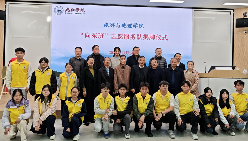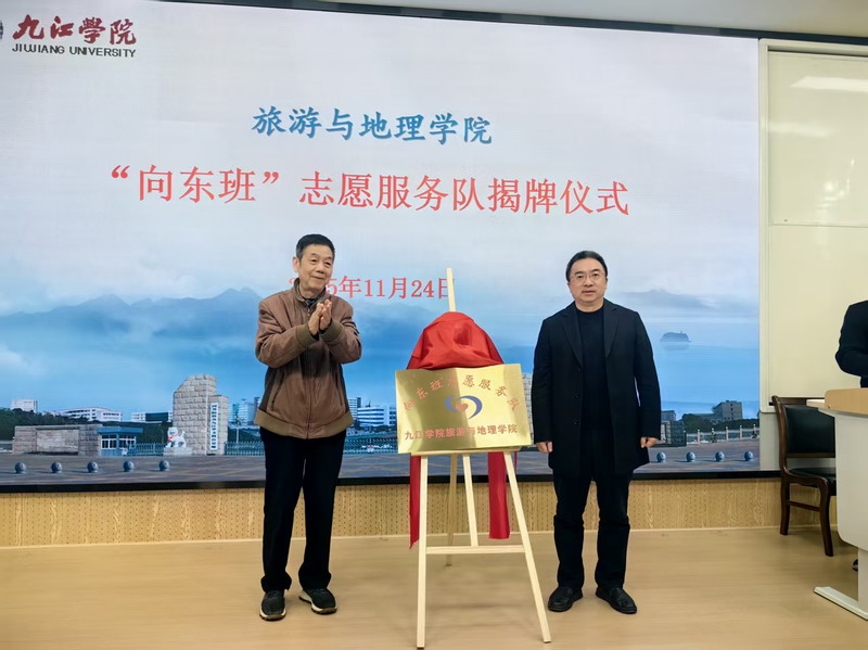 在热烈的掌声中,向东为九江学院旅游与地理学院“向东班”志愿者服务队授旗,旅游与地理学院教工第二党支部书记崔明月接旗;九江市爱国拥军促进会党总支书记杨振辉和旅游与地理学院李华院长共同为九江学院旅游与地理学院“向东班”志愿者服务队揭牌。共同开启“向东班”“志愿服务队新征程,也开启了一段新的旅程。