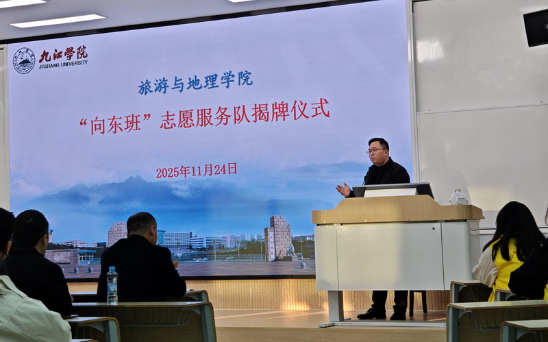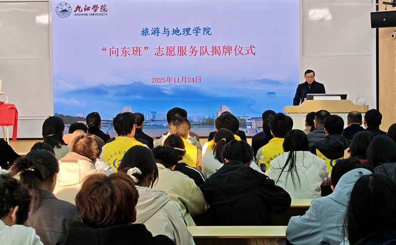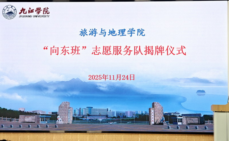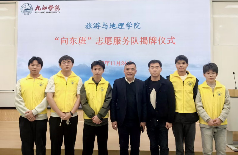 为进一步弘扬“奉献、友爱、互助、进步”的志愿者精神与劳模精神,提升学生社会责任感,九江学院旅游与地理学院与中国电信九江分公司向东班合作,发起成立了“九江学院旅游与地理学院向东班志愿者服务队”。11月24日下午,“向东班”志愿者服务队揭牌仪式在竞知楼阶四报告厅隆重举行。