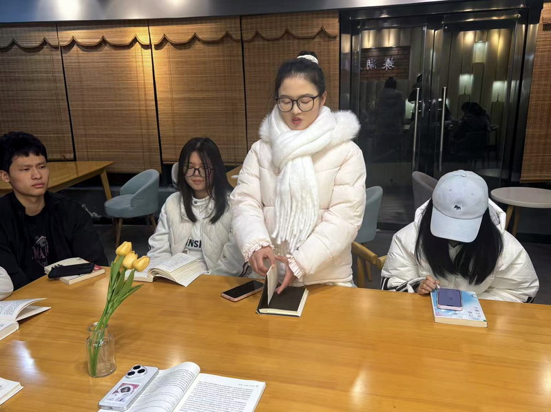本次分享会以“用文字消解焦虑,用阅读点亮青春”为核心,设置了“好书荐读”“心得分享”“互动解忧”三大环节。分享环节中,学子们踊跃分享。有同学分享《被讨厌的勇气》中“课题分离”的理念如何帮助自己摆脱他人评价的内耗,重拾自我认同;分享末尾,有同学朗读了《人间失格》中的经典片段,舒缓的语调中满是对生命本质的释然,引起大家的轻声共鸣;还有同学结合学习焦虑,推荐《慢慢来,一切都来得及》,鼓励大家接纳成长的节奏。现场互动积极,同学们在交流中碰撞思想、彼此慰藉,氛围温馨而治愈。