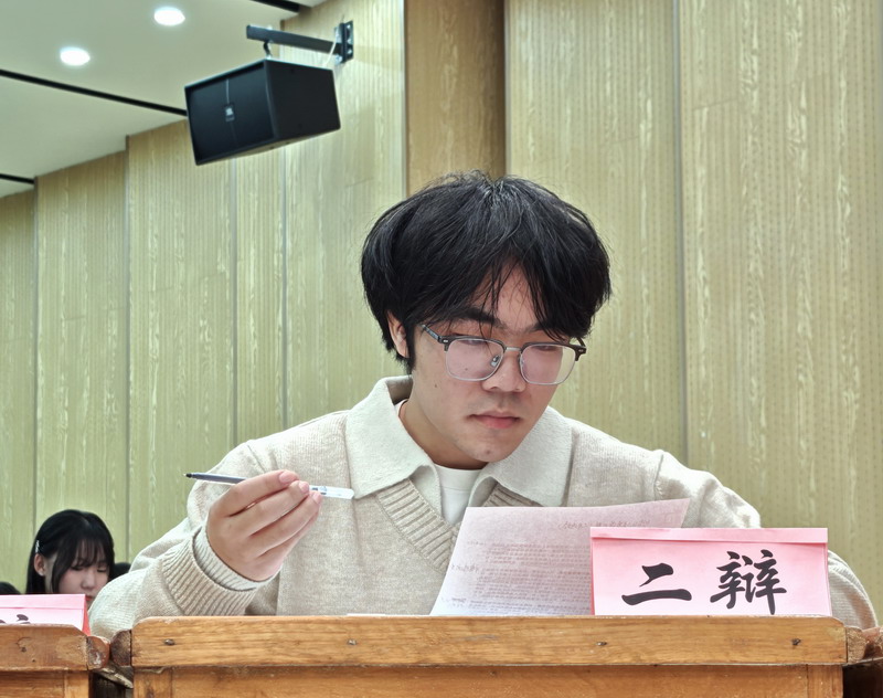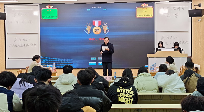 当“别离忧愁”的怅惘遇上“人生遗憾”的无奈,一场关于离情别绪的哲学思辨在旅游与地理学院的赛场激烈上演。11月27日晚,学院“新生杯”辩论赛决赛在竞知楼阶四报告厅圆满收官,从11月4日开始,8支队伍经过20多天的激烈角逐,最终,A2511班和A2512班的辩手们以“别离让人生变得完整还是遗憾”为辩题,用语言交锋点燃思想火花,为我们呈现了一场兼具深度与温度的思辨盛宴。学院党委副书记吴彭年、临床医学院24年辩论赛最佳辩手彭雨彤同学,九江学院辩论队队长熊逸翔同学担任本场比赛的评委。学院党建与思政科科长李海与团学联主席团成员及各班学生代表一起观看了比赛。