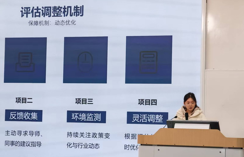 比赛中,选手们围绕个人职业规划进行展示:先呈现职业兴趣测评数据,再深入剖析自身优劣势与外部环境影响。成长赛道选手聚焦未来职业发展,所规划的方向与行动路径逻辑清晰、可行性强;就业赛道选手则充分发挥个人优势,全面展现了优秀的通用素质、岗位适配能力与发展潜力,现场表现亮眼。