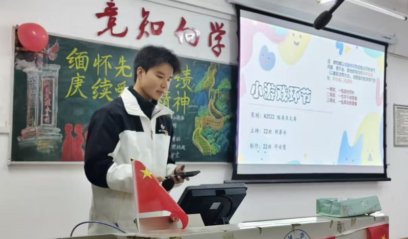 在互动环节才艺展示阶段,同学们用曼妙的舞姿、激昂的歌声,将历史的底蕴与青春的创造融为一体;并通过“海龟汤”“甲骨文猜动物”“反口令”等趣味游戏将现场气氛推向高潮,这些互动使得爱国主题教育知识以更加鲜活的方式向大家呈现。