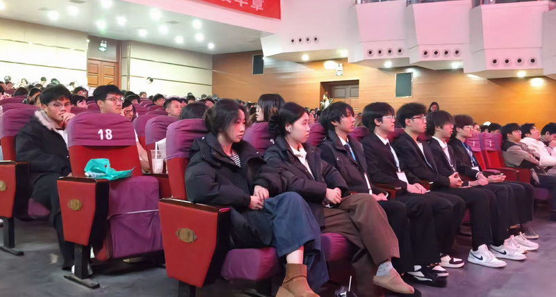 第二篇章“岁月回响,薪火相传”掀起晚会热潮。杨晶晶、徐乐恩等4名同学的新声四重唱,传递青春活力;团委各部门及辩论队联合呈现的话剧朗诵《觉醒年代》,生动再现百年前先进知识分子与青年学子救国图存的热血岁月,彰显“苟利国家生死以”的赤诚担当,让爱国精神与担当意识深植人心。