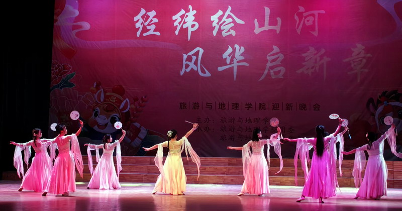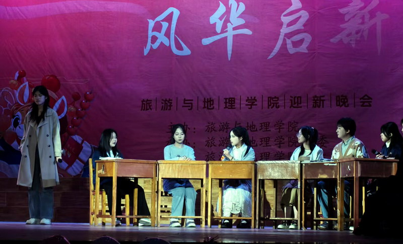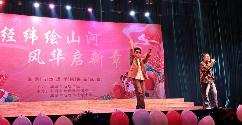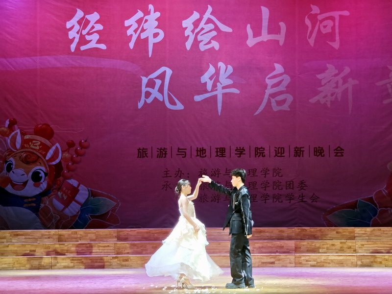 12月17日晚,我校大礼堂内灯火璀璨、氛围热烈,旅游与地理学院“经纬绘山河,风华启新章”2025年迎新文艺晚会在此隆重举行。校党委委员、组织部部长杨杰,校学工部部长吴铃,学院党政班子成员、2025级辅导员、班主任及各年级学生代表与2025级全体新生齐聚一堂,共赏精彩演出,共度美好夜晚。