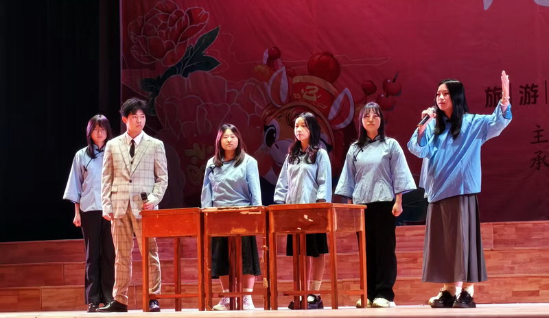第四篇章“青春跃动,梦想起航”为晚会画上圆满句号。新生助导的萌趣企鹅舞与合唱《我们的明天》,洋溢着蓬勃朝气;导游队等部门联合呈现的幕布剧《以青春之名,赴旅院之约》,还原大学生活百态,结尾歌曲《我的未来式》唱出青春无畏、逐梦前行的昂扬姿态。