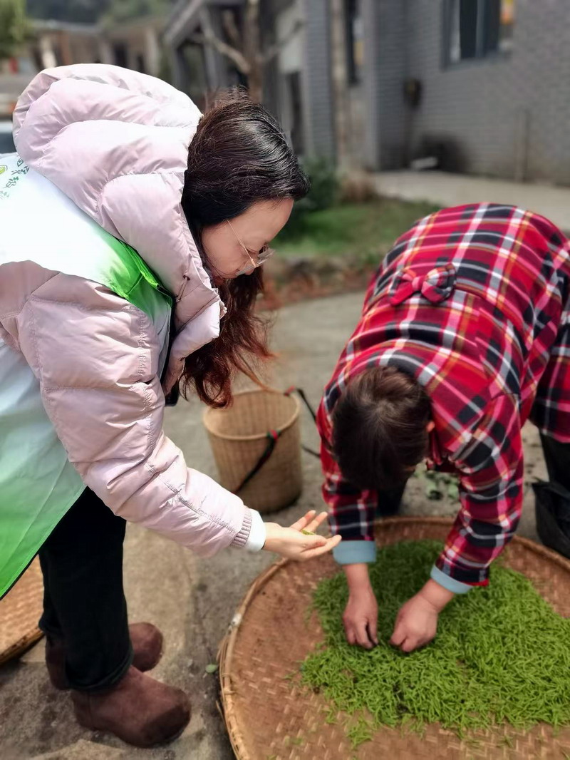 气温回暖,春茶冒尖。为筑牢春茶质量安全防线,保障“如如茶村”庐山云雾茶产品品质,3月19日,江西濂溪茶科技小院团队紧扣农产品质量安全监管要求,深入绿丰茶园,启动加工鲜叶现场质量抽样检测工作,从源头上守牢茶叶质量安全关。