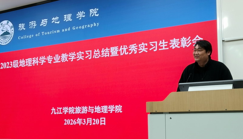 曹禹副院长讲了话。他首先对本次教学实习工作取得的成效给予充分肯定,并对荣获“优秀实习生”称号的同学表示热烈祝贺。指出,教学实习是地理科学专业人才培养的关键环节,是同学们将课堂所学理论知识与实践相结合、提升综合素养的重要途径。他勉励全体同学以优秀实习生为榜样,见贤思齐,认真总结经验,查漏补缺,在今后的学习中不断磨砺专业技能,锤炼过硬本领,为即将走上工作岗位奠定扎实基础。