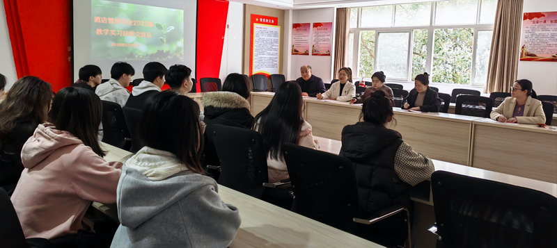 为全面总结上学期实习工作成果,深化校企协同育人机制,并为持续推进专业建设与教学改革凝聚共识。3月25日下午,酒店管理教研室在竞知楼510党员活动室成功举办了2023级学生教学实习经验总结交流会。在实习点带队老师郭清、卢悠然、严宽荣、吴冬艳、张静及2023级各实习点学生代表共同参加了此次交流。