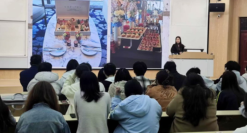 在杭州宋城实习的邱玉娟同学分享了在接待部从事闸口检票、贵宾接待、游客投诉处理等工作的实战经验。她坦言,看似简单的检票工作实则蕴含服务学问,面对情绪激动的游客,她灵活运用沟通十四条原则,以耐心微笑与专业应变化解矛盾,总结出“微笑是服务的最佳武器,沉着冷静是处理突发问题的关键”的工作心得,同时告诫大家在职场中要学会保护自身安全。在杭州英冠索菲特酒店实习的刘睿琪同学,以幽默的语言分享了在中西餐厅的工作日常,面对服务流程繁琐、效率待提升等问题,她在老同事的带领下灵活协调资源,同时主动带教新实习生,她提出初入职场要树立不卑不亢的处事态度,既要虚心学习,也要坚守主见,才能赢得他人尊重。