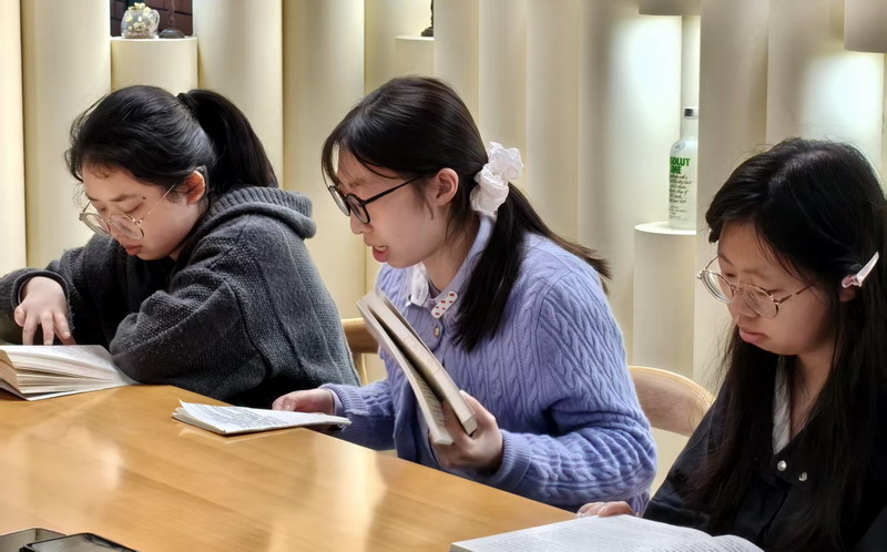 活动在温馨雅致的咖啡馆拉开帷幕。主持人以诗意语言开场,希望同学们以诗词为媒,在平仄韵律中感受古典之美,从千年文脉中汲取前行力量。同学们围绕《唐诗三百首》《宋词三百首》《人间词话》《枕上诗书》《诗词里的家国天下》等经典著作,结合自身感悟展开分享交流。