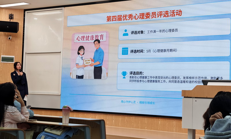 仪式上,王菲同学以PPT的形式介绍了本届心理健康文化节活动主要内容、具体要求和注意事项。