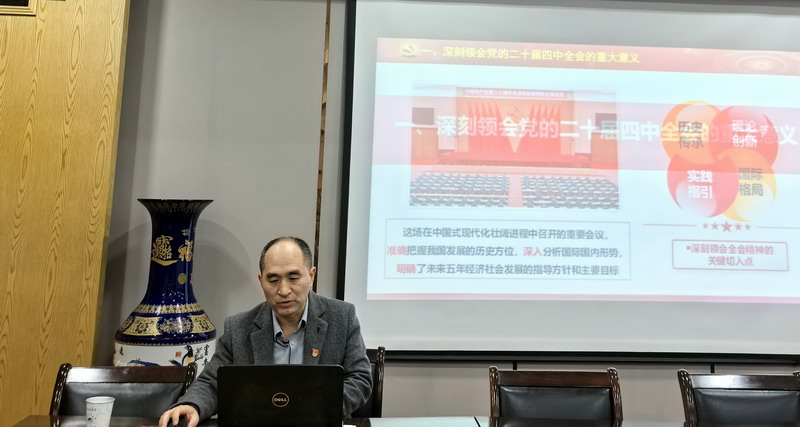 为深入学习贯彻党的二十届四中全会精神,切实将全体教职工的思想与行动统一到党中央决策部署上来,12月10日下午,旅游与地理学院在竞知楼512会议室举办学习宣传贯彻党的二十届四中全会精神专题辅导报告会。邀请校马克思主义宣讲团成员、马克思主义学院段善君教授作专题辅导,党委书记彭晓主持会议,全体教职工参加学习。